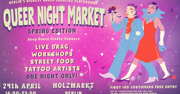 Queer Night Market Berlin lands at Holzmarkt on April 24th for a one-night celebration of LGBTQ+ creativity, nightlife culture, and community connection in the heart of Berlin.
